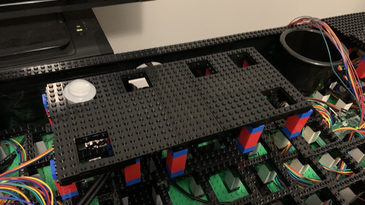 The arcade control panel built from LEGO® brick.